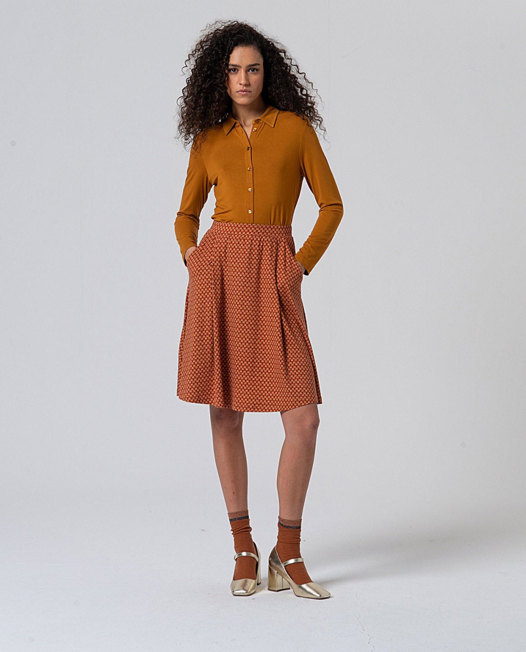Falda evasé  con bolsillos , con cintura elástica, en tejido muy ligero, suave y confortable,  Muy combinable con otros modelos de la colección. .