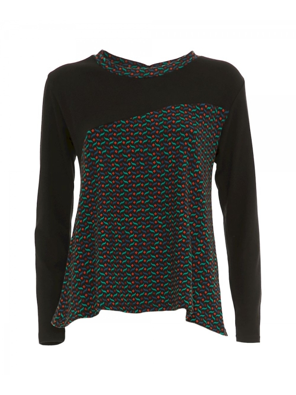 Jerseys de mangas largas en tejido lanilla en color negro y estampado multicolor, marca Babadesign, tejido calentito, muy versátil y original. De estilo boho, chic, bohemio, vintage, hippie style, moda alegre, muy combinable con otros productos de nuestra colección Baba.