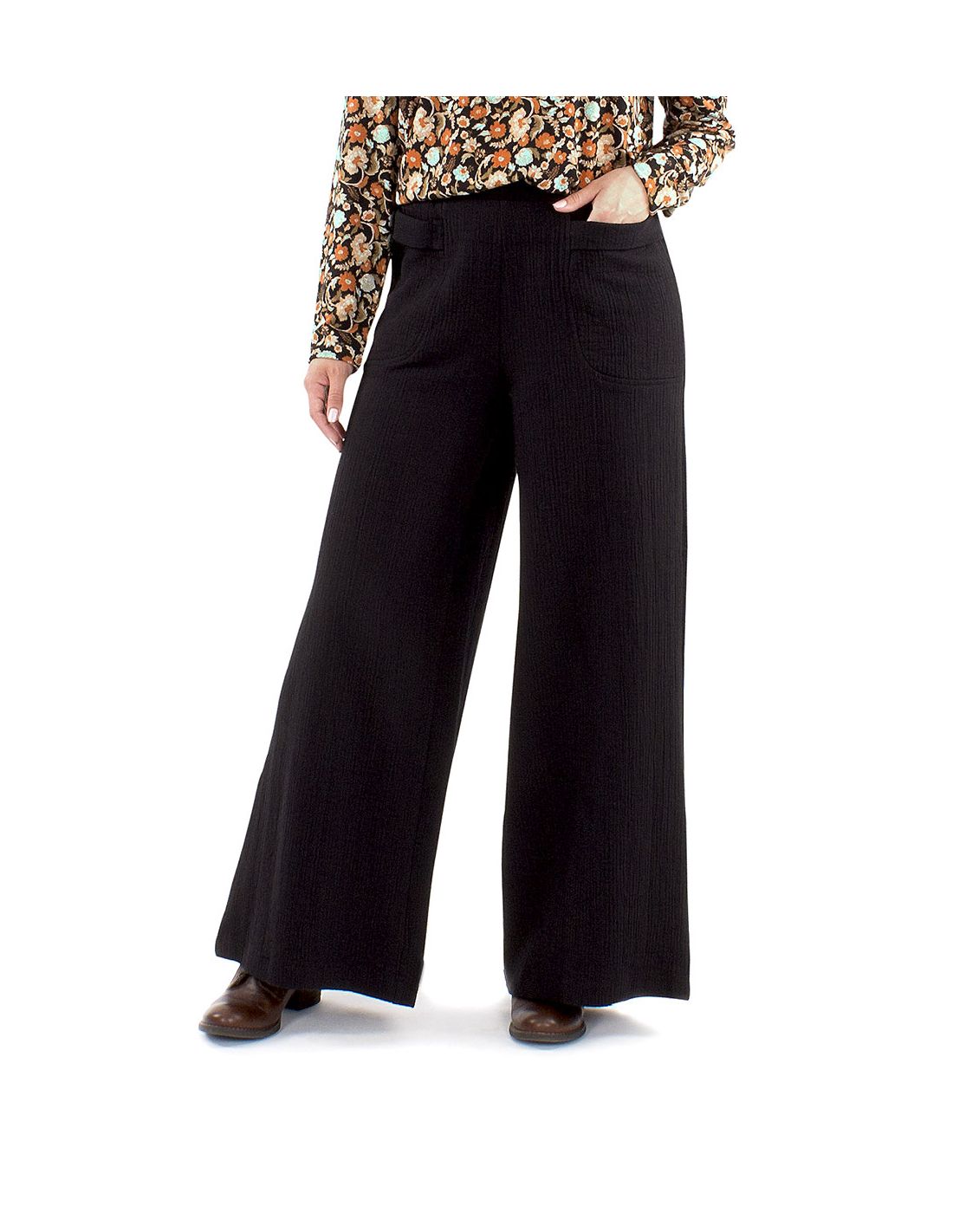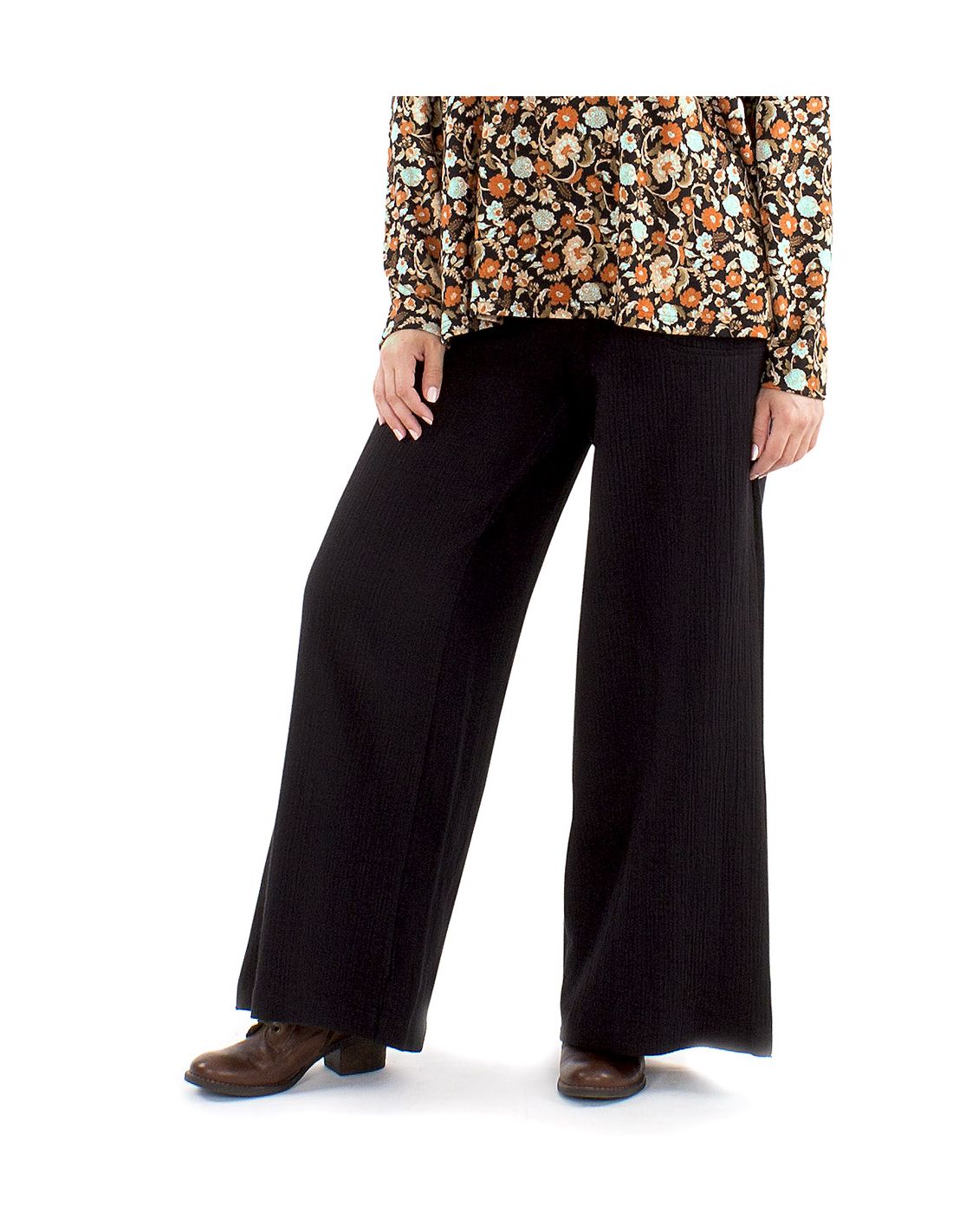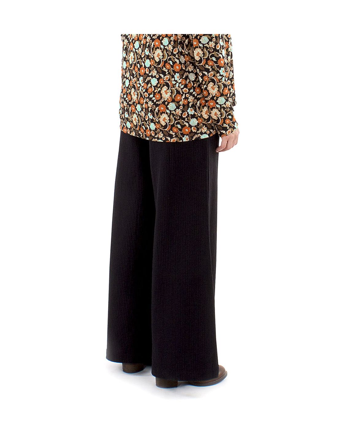 Pantalón ancho 100% algodón ancho negro con cintura elástica ajustable, tejido cómodo, suave y confortable. Muy combinable con otros modelos de la colección.