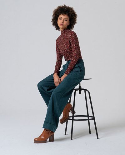 Pantalón amplio en color verde botella, en tejido muy ligero, suave y confortable. Muy combinable con otros modelos de la colección.