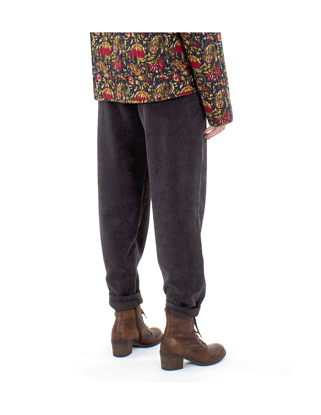 Pantalón pana negro con cintura elástica ajustable y botón delantero, tejido muy ligero, suave y confortable. Muy combinable con otros modelos de la colección.