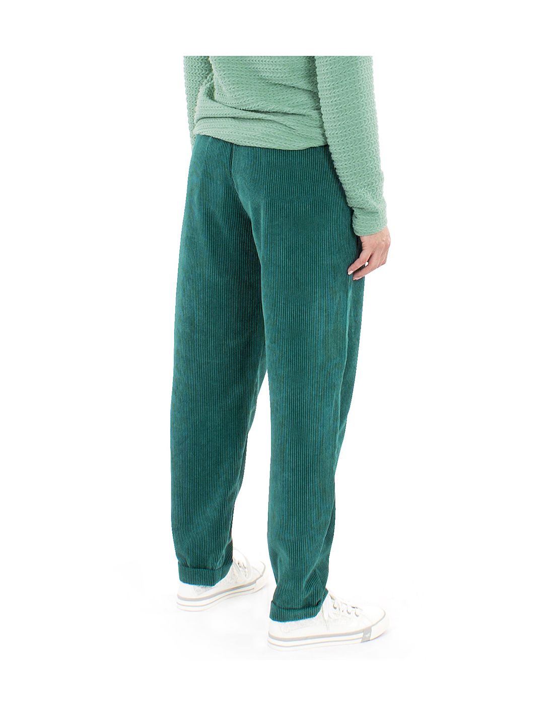 Pantalón pana turquesa con cintura elástica ajustable y botón delantero, tejido muy ligero, suave y confortable. Muy combinable con otros modelos de la colección.