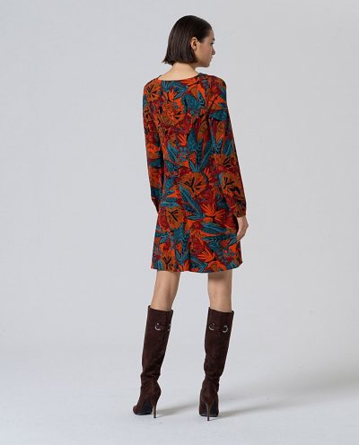 Vestido con estampados multicolor tejas, colores otoñales.. Tejido muy acogedor y perfecto para el invierno.. Muy combinable con otros productos de nuestra colección. Moda alternativa para ti.