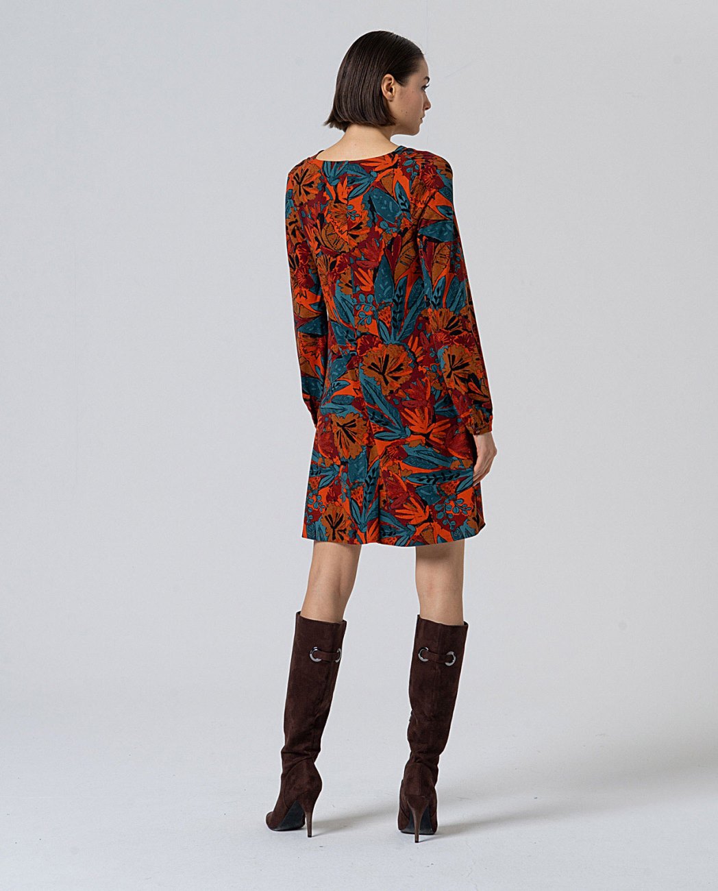 Vestido con estampados multicolor tejas, colores otoñales.. Tejido muy acogedor y perfecto para el invierno.. Muy combinable con otros productos de nuestra colección. Moda alternativa para ti..